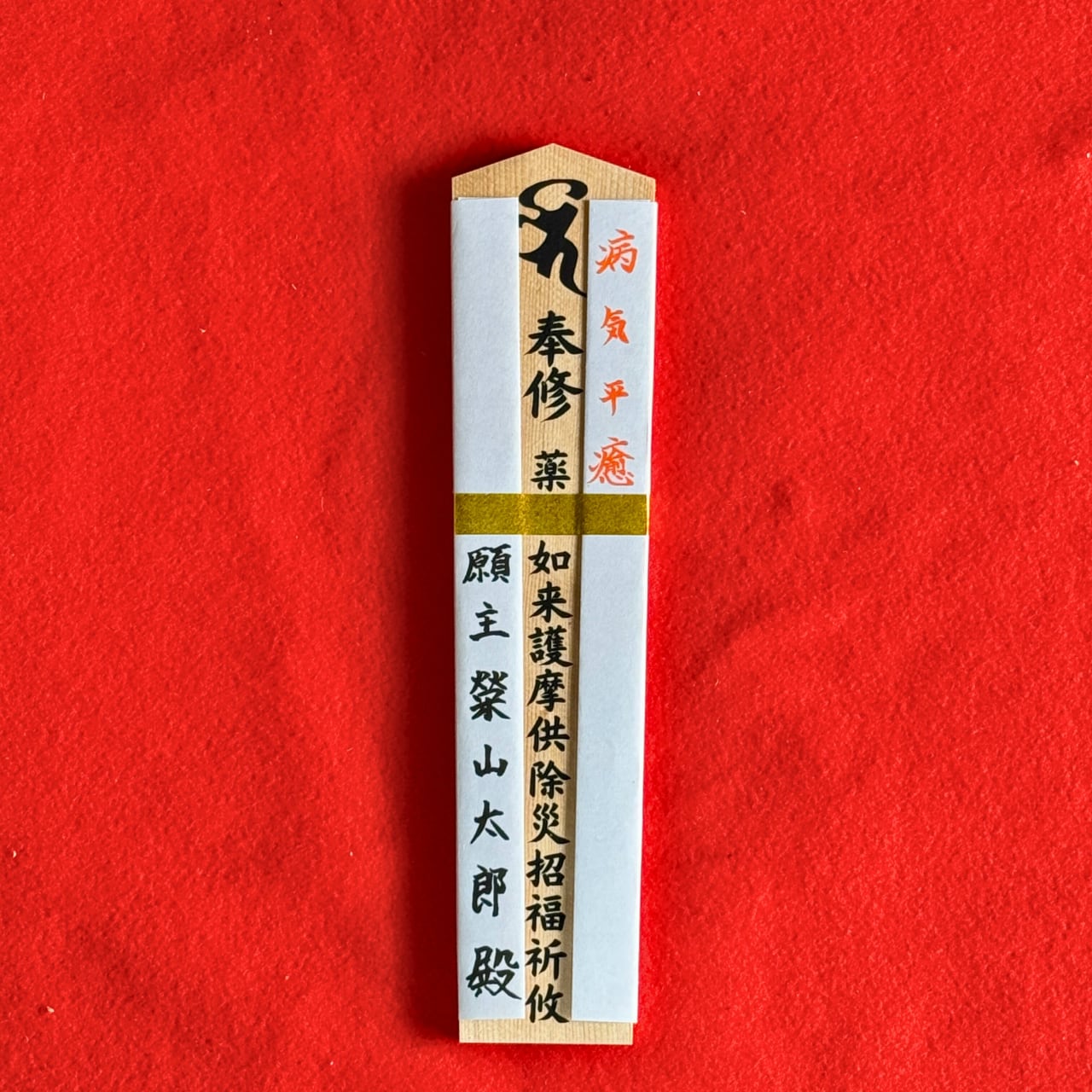 榮山寺の秘仏御本尊「薬師如来」の御祈祷札(木札)です。